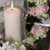 If you don't feel the need to cover your walls completely, opt for evenly-spaced decorations along their length instead. Silk flower arrangements or candles on tall church-style stands don't need to be fixed to the walls, and can be moved around easily so you can judge the most effective position.